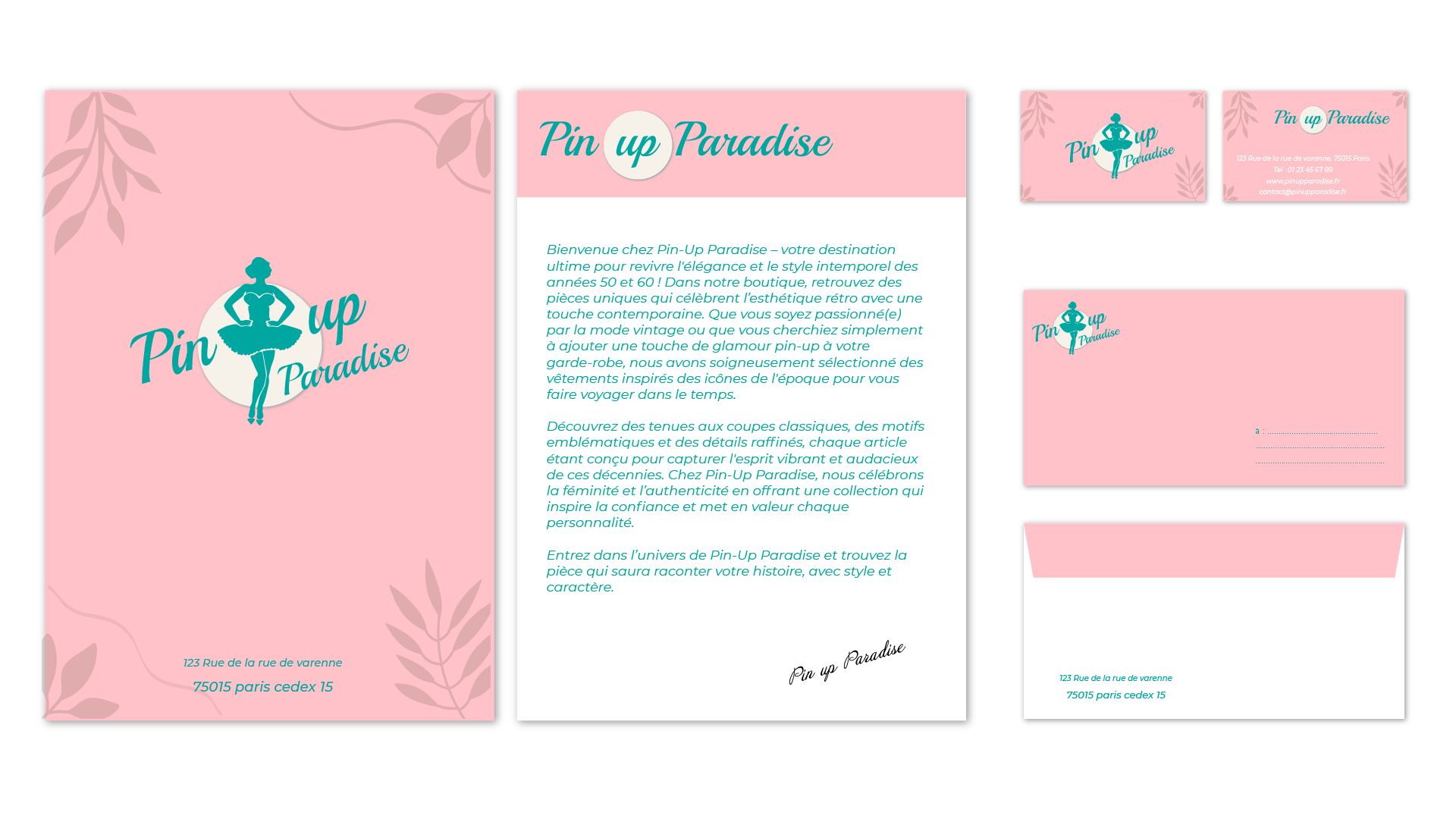 Pin-Up Paradise souhaitait une identité visuelle complète qui capture l’esprit élégant et audacieux des années 50 et 60, en mettant l’accent sur le style pin-up et l’atmosphère vintage. L’objectif était de créer un univers visuel unique et immersif, qui invite la clientèle à revivre l’époque glamour des icônes rétro, tout en valorisant l’authenticité et l’élégance intemporelle des vêtements proposés.